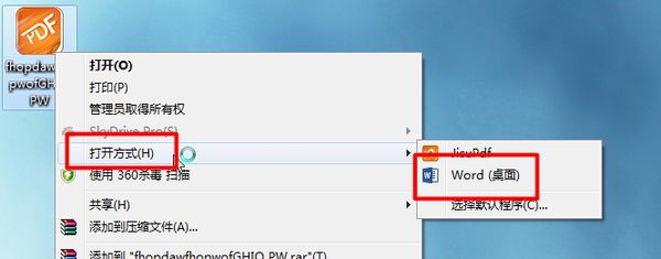 2.对准PDF-右键-打开方式-word(桌面)。图1