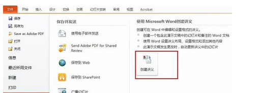 1.点击【文件】-【保存并发送】-【创建讲义】