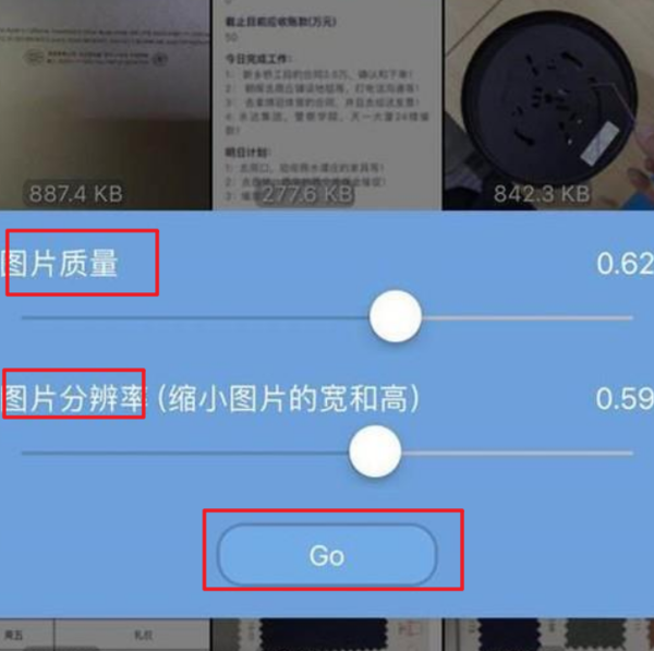 5.选择好照片后,软件会弹出压缩图片的参数设置,此时根据个人压缩需要调整图片的相关参数然后点击【Go】开始压缩图片。