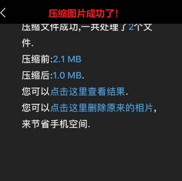 6.然后等待软件压缩工作完成,完成压缩后,页面会显示压缩后图片发生的变化情况说明。这就是在手机压缩图片的方法。