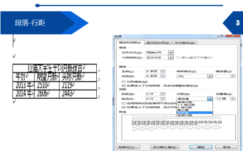 如图,表格中的字显示不完全,这时右击段落-行距-不要选择固定值。