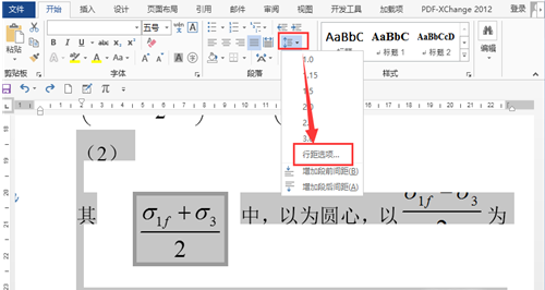 1、打开Word 2013文档,选中公式显示不完全的这个段落的文字。