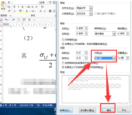 3、在行距中,选择“最小值”,然后点击“确定”即可。