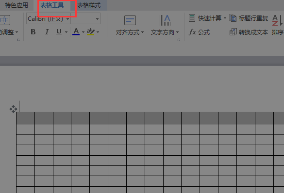 3、点击表格工具选项以后,再选择右上角wps文字里的表格功能;