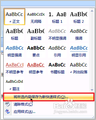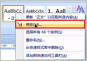对样式的操作。在任何一个样式上右击,可以有下图所示的菜单出现。可以看到,能够对样式进行修改、同时可以选择所有应用这个样式的文字。