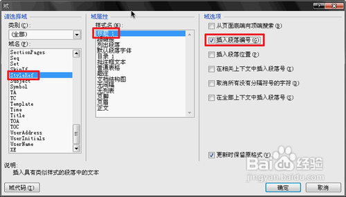 域代码设置。然后选styleRef域命令,样式名为标题1,勾选“插入段落编号”就可以了。