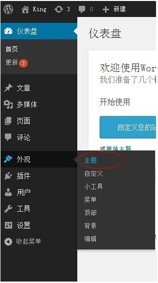 找到wordpress后台的外观——主题