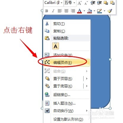 第二步:在圆角矩形图形上点击鼠标右键,在弹出的菜单中选择【编辑顶点】,或者点击上方工具栏中【编辑形状】下的 编辑顶点 命令。