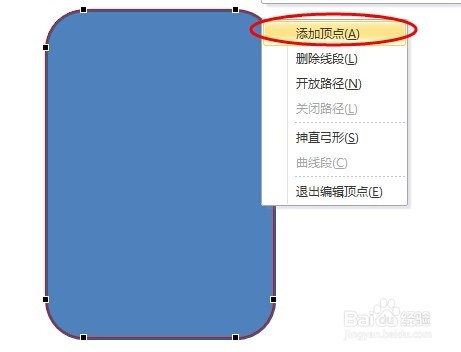 第三步:在这个圆角矩形的边线上点击右键,选择【添加顶点】,然后分别在左上角和右上角各添加一个顶点。