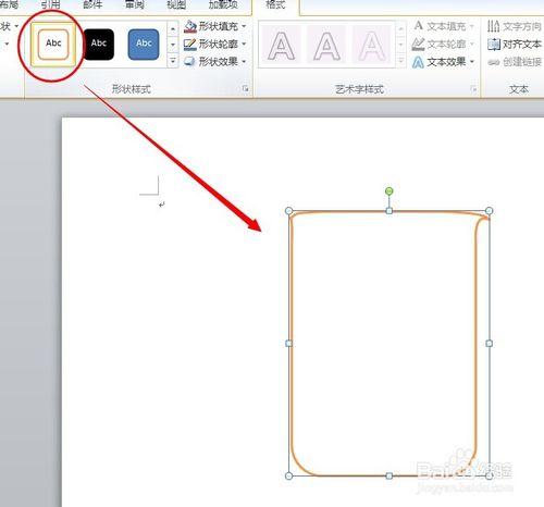第四步:分别用鼠标拖动刚才添加的两个顶点的控制柄,慢慢调整成烧杯口的形状。点击选择【形状样式】组中的 彩色轮廓-橙色,强调颜色6 的图标。