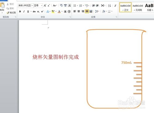 第五步:烧杯大体形状已经完成,接下来给烧杯添加刻度线和容量文字字符,稍微调整后完成。
