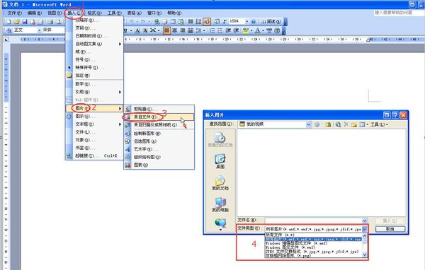 2、打开Word,点击【插入】菜单—【图片】—【来自文件】,找到(已转换格式的)图元文件即可。