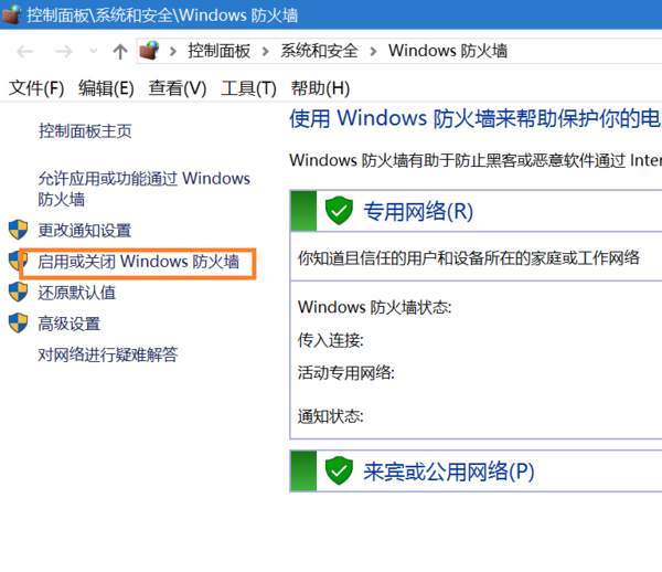 点击任务栏右边的网络图标——网络设置—— windows防火墙——启用或关闭 windows防火墙——在右边关闭——确定。