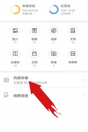 2、 选择“内部存储”