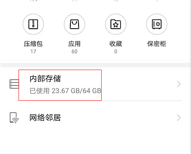 2、然后,进入到文件管理操作界面后,找到“内部储存”选项,点击打开。