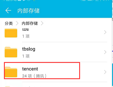 3、内存存储目录文件夹,选择“Tencent”