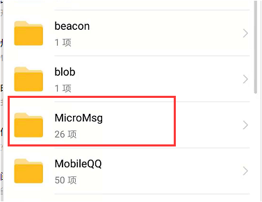 4、点击“MicroMsg”文件夹