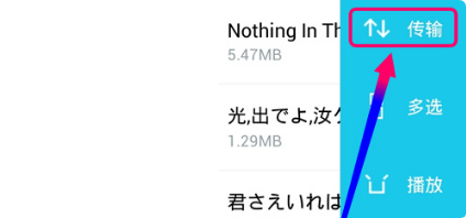 8. 点击需要传送的文件,弹出菜单选择“传输”。