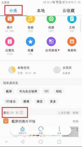 c.最近下载的文件可进入文件管理>分类>最近,在对应的第三方应用中查找。