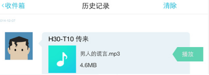 9. 当文件传送完毕后,就可以在收件箱->历史记录里查看。