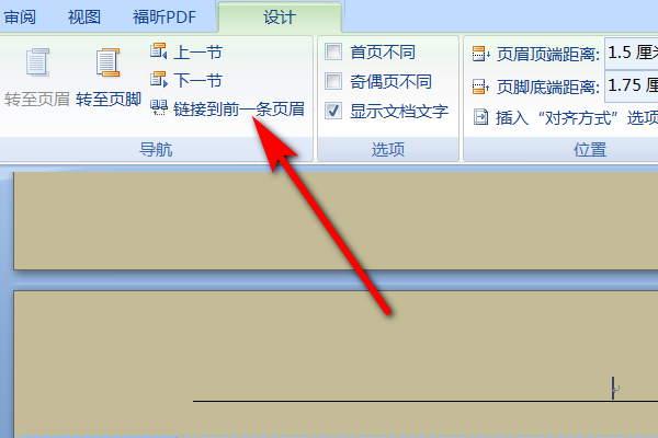 6.此时就会出现一个新的空白页,双击此空白页上面的页眉,然后点击链接到前一条页眉。