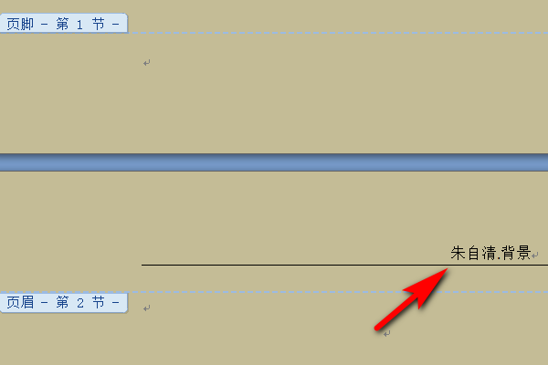 7.然后在编辑页眉里输入本页的页眉,例如朱自清.背景,接着双击正文任意处即可。这样就能设置不同的页眉了。