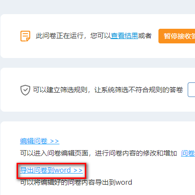 3.在设计向导页面中找到导出问卷到WORD选项,点击该选项进入到导出页面中。