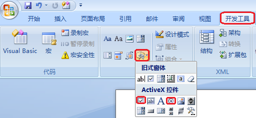 回到Word文档:视图 / 工具栏 /控件工具箱
