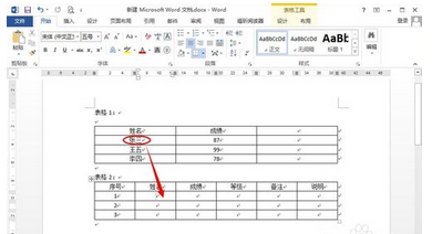 2.首先选择复制表格1中的要复制粘贴到表格2中的内容;