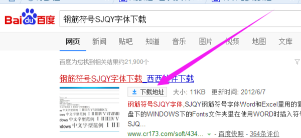1、百度搜索下载钢筋符号SJQY字体下载。