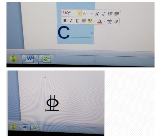 b.在默认字体宋体输入法下输入shift+c,在office2010版本中选中字母然后右键选择SJQY字体即可出现如下所示符号,