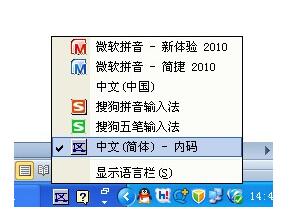 注意在输入法里名称叫中文(简体)-内码。