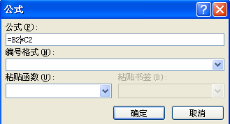 3、弹出公式对话框,在公式的输入框中输入:=B2*C2;