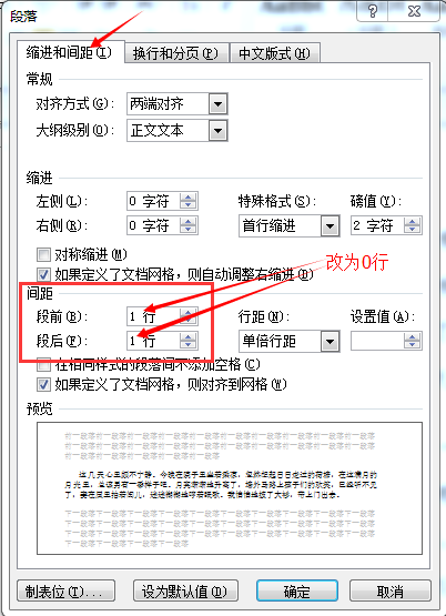 2、把段前段后的间距改为“0行”即可。