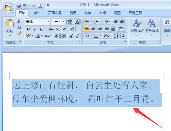 2、用鼠标直接选择这些想要变成空心字的文字,如图所示。