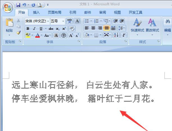 6、点击其中的“确定”,回去看到我们的字体已经空心了,说明我们的设置完成