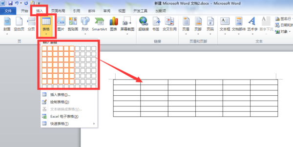 打开word2010,点击“插入”,选中“表格”,然后选择特定的行列数的表格;