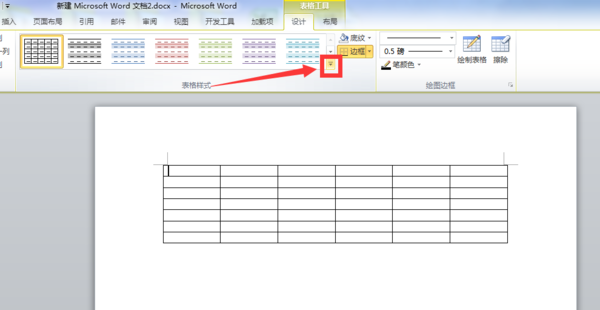 表格插入之后,在“表格样式”右下角,点击小三角形按钮;