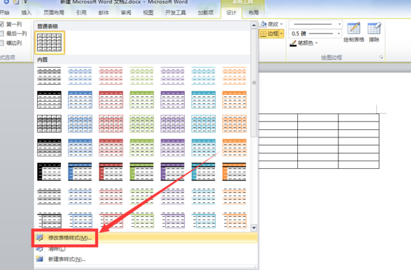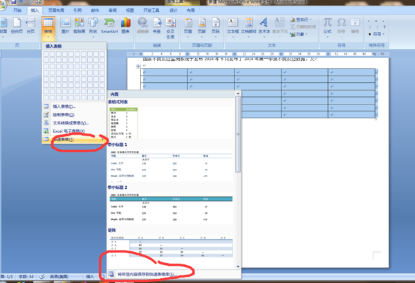 2010word如何将新创建的表格以"简明型3"为样式标准