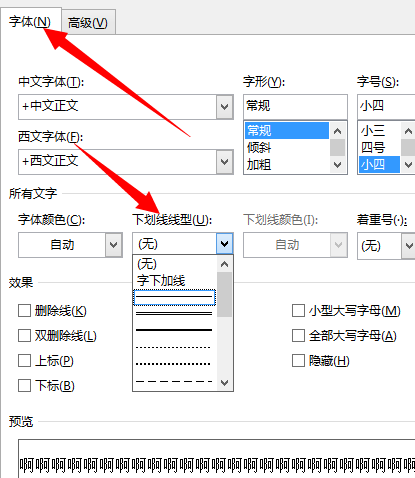 方法三:选中要加下划线的文字,然后右击,选择“字体”,在“下划线线型”里选择想要的类型,最后点击右下角的确认即可。