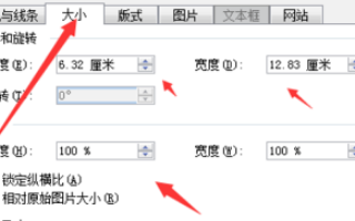 4、然后在“尺寸和旋转”区域将高和宽需分别设置为2.99cm和5cm,点击“关闭”按钮返回。