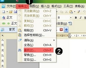 1,打开文档,在标题栏点击 编辑》查找