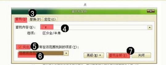 2,在出现的“查找”对话框里输入^#,在“突出显示”这一项的方框里打对勾,点击查找全部