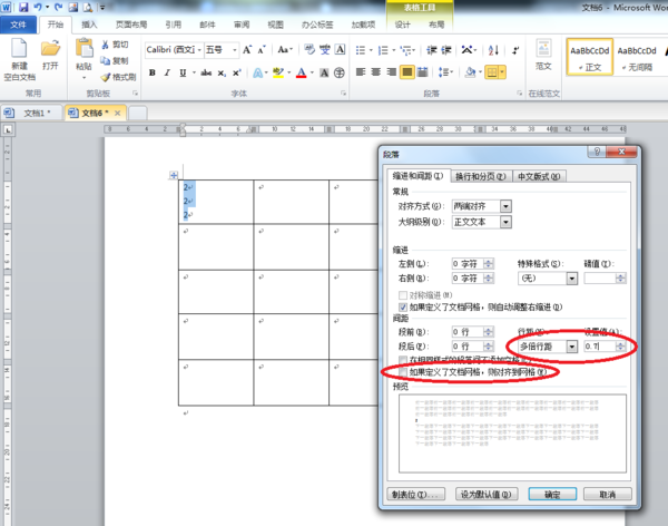 首先去掉”如果定义了文档网格,则对齐到网格“复选框的勾选,然后在行距组合框中选择”多倍行距“,最后在”设置值“列表框中设置合适的值即可,效果如下
