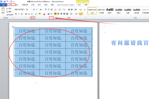 1、打开需要操作的WORD文档,选中表格内容,找到开始选项卡中字体一项,带你及右下角按钮,进入字体格式设置界面。