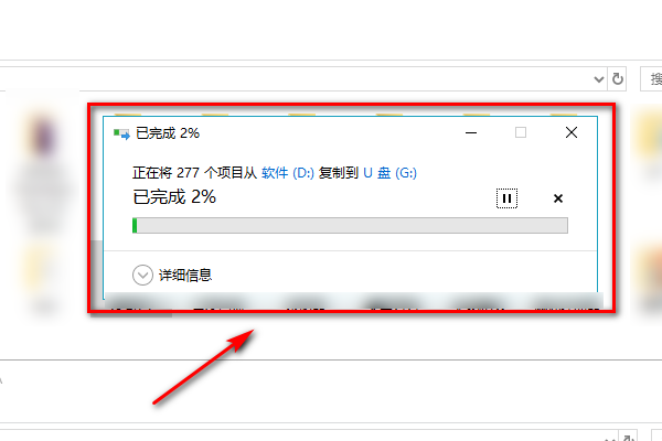 8、文件传输的过程中会出现传输窗口,等待传输达到百分之百,就说明文件夹已经传输完毕。
