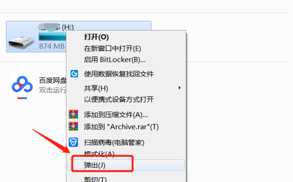 6、用完之后要正确插拨,不能随意拨除。点击任务栏的绿色小图标,会出现文字“安全删除USB驱动器”,点击文字即移除该硬件,然后再从电脑上拔出U盘。