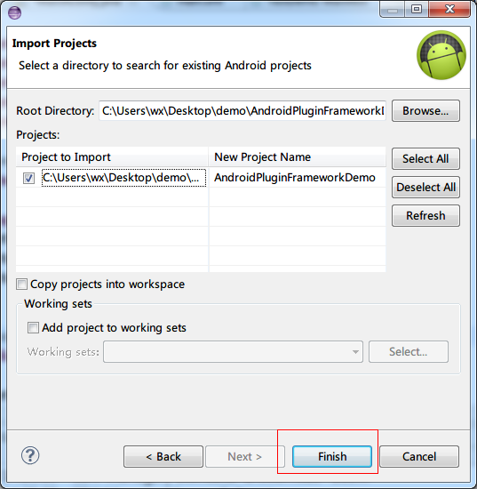 点击Finish后左边会有你刚导入的工程,然后右键工程