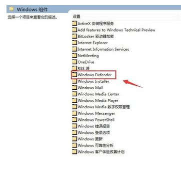 2、在打开的组策略窗口中,依次展开计算机配置>管理模板>Windows组件,选择【windows组件】中的windows Defender 防病毒程序
