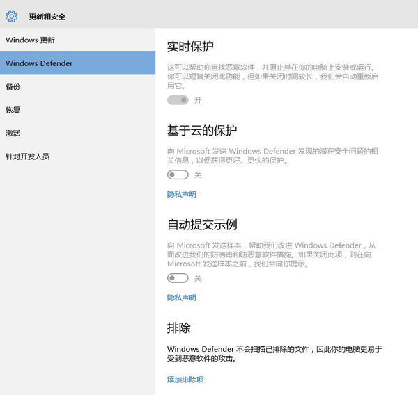 WIN10自带杀毒怎么才能不让他自动删除文件